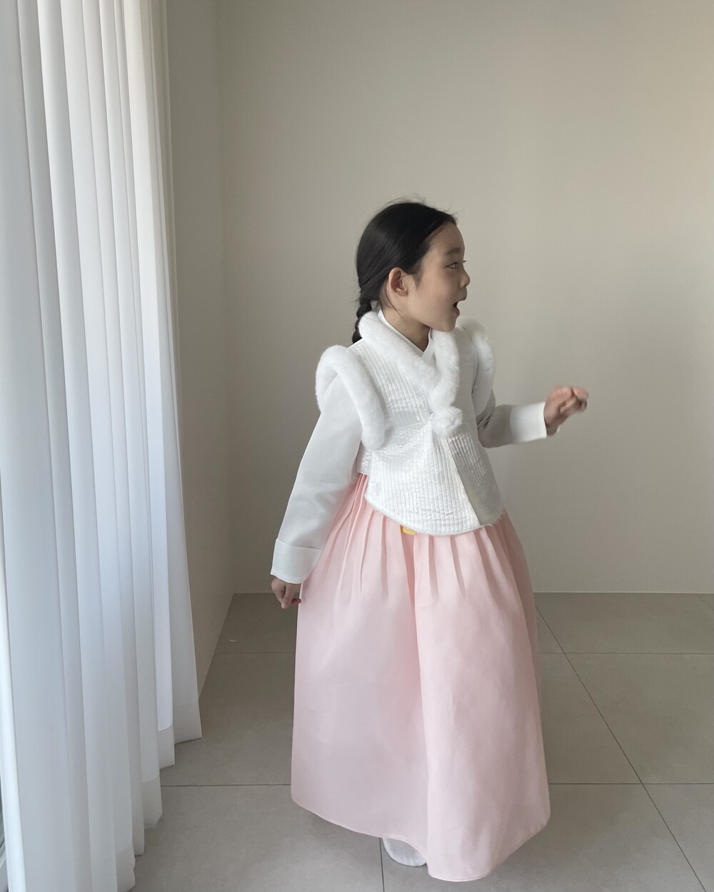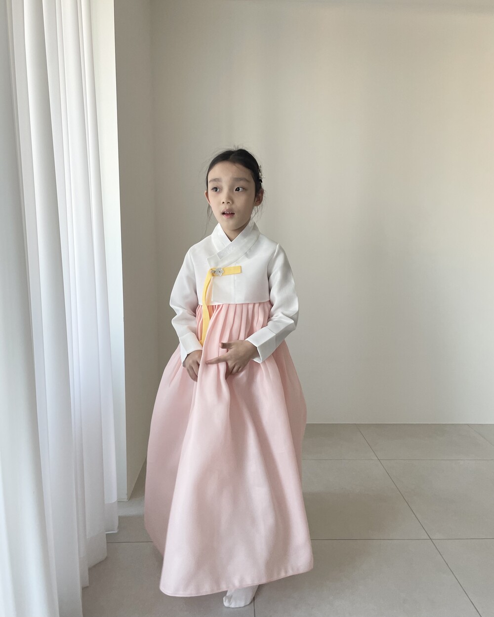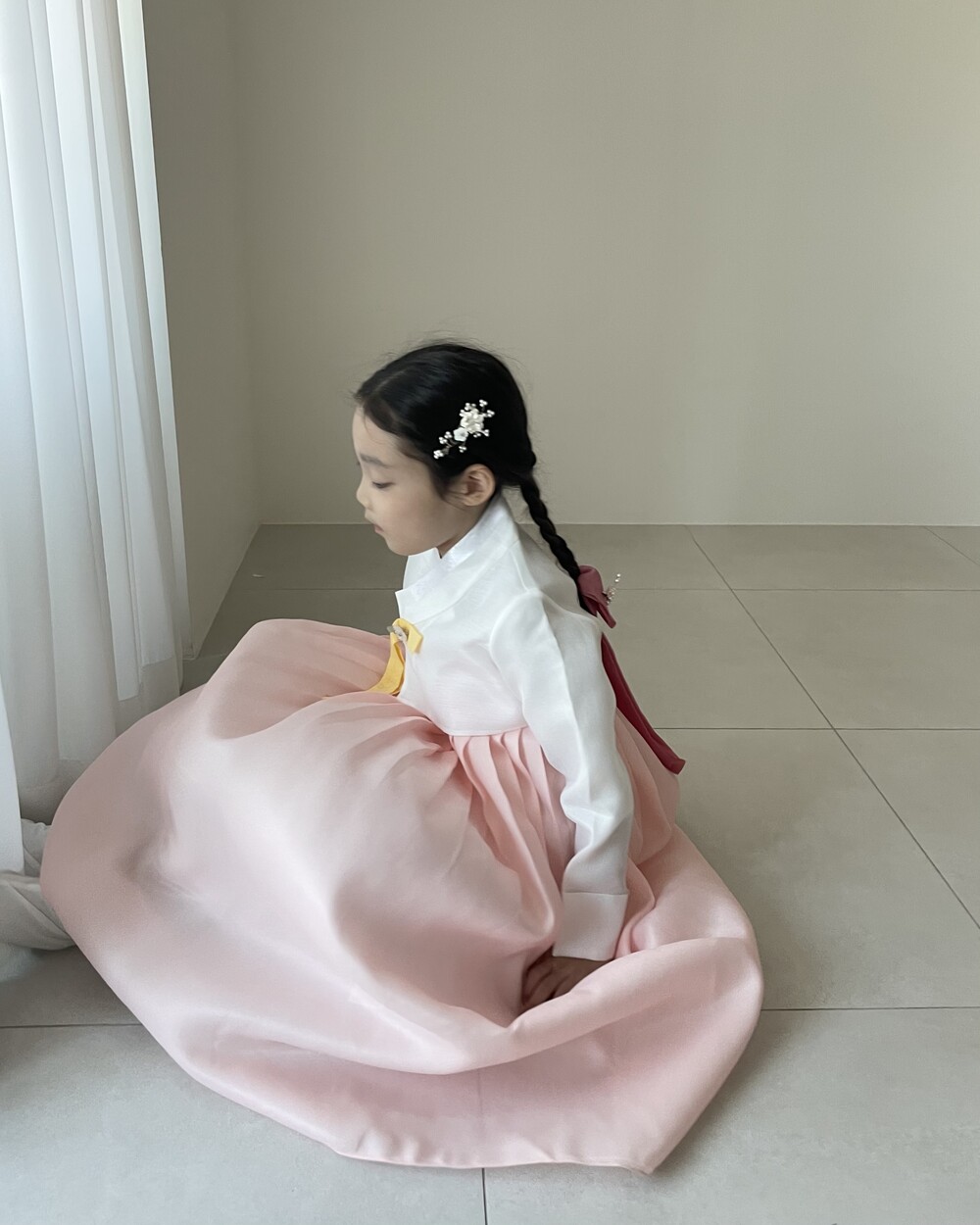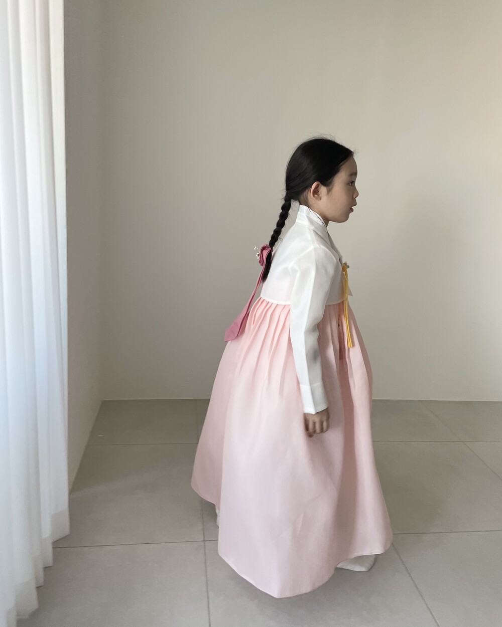 여아 한복은 속치마 착용 유무에 따라 핏이 확연히 차이나기에