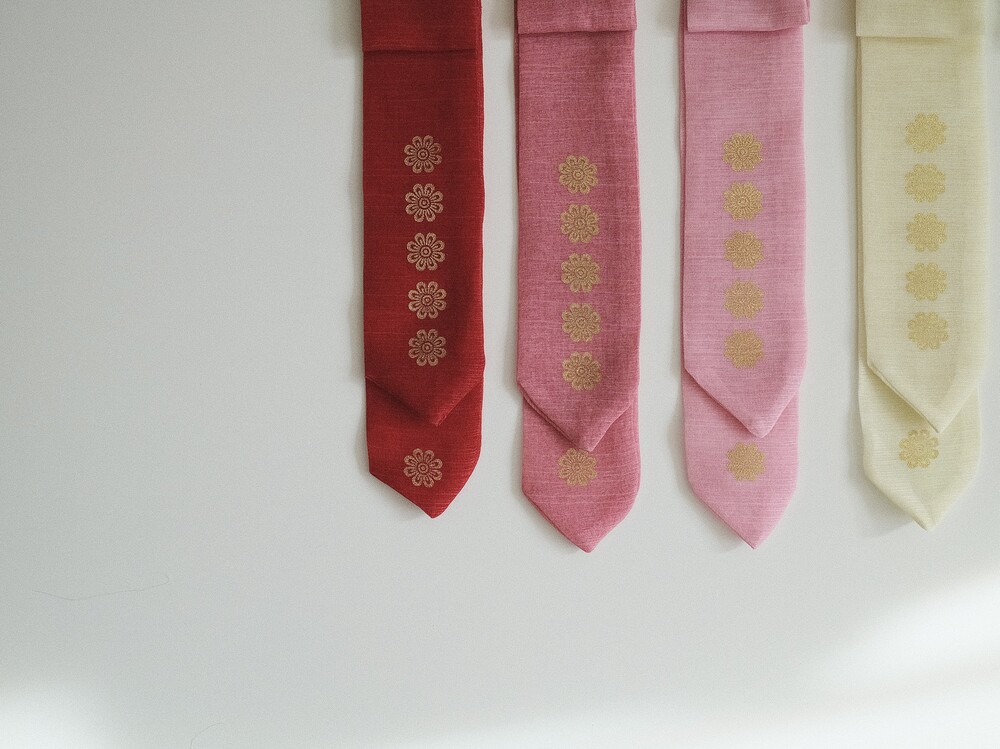 신상 원단에 금박으로 무늬를 찍어낸