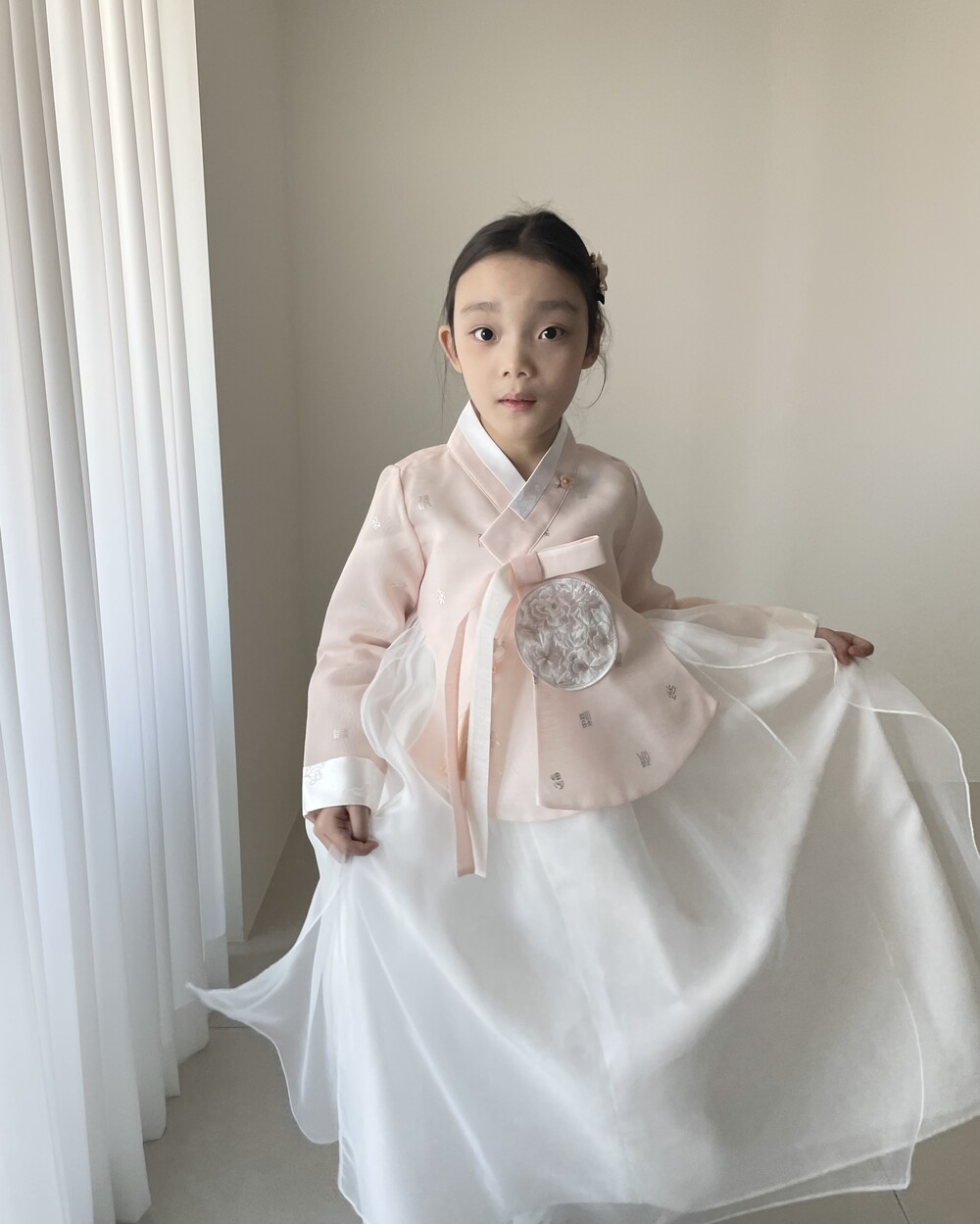 핑크톤 헤어핀으로 사랑스러운 봄꽃같은 느낌이 든답니다.