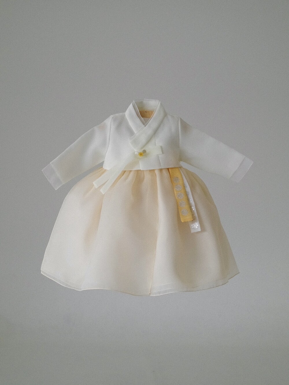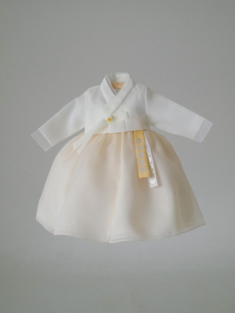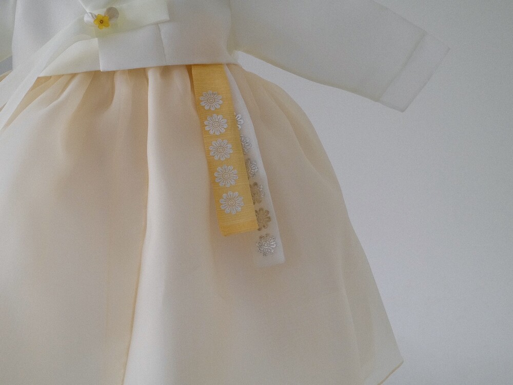 아이 저고리 + 연노랑 치마 조합입니다.