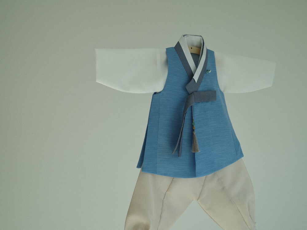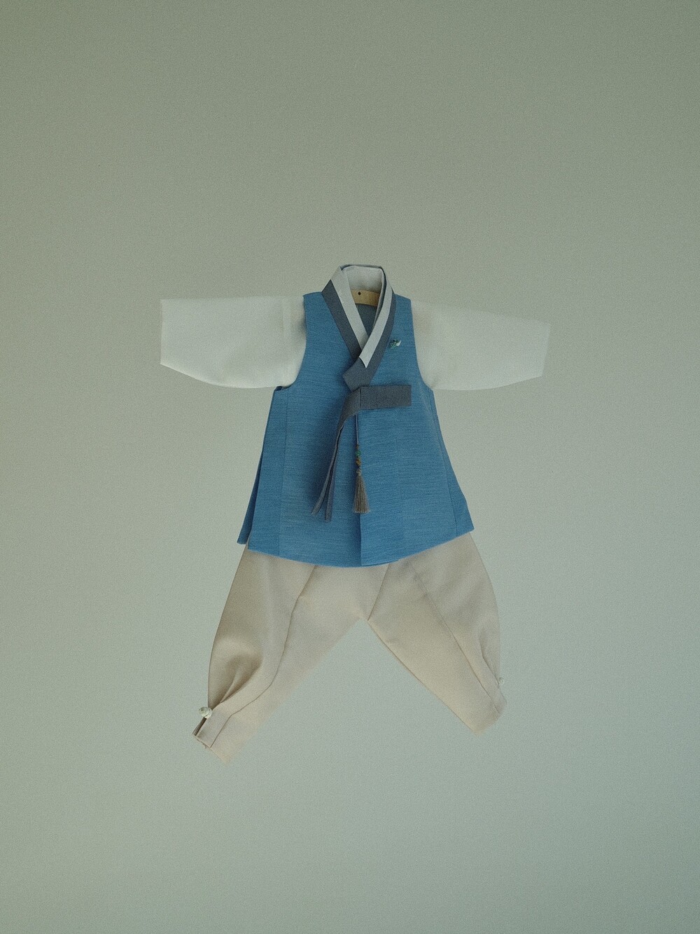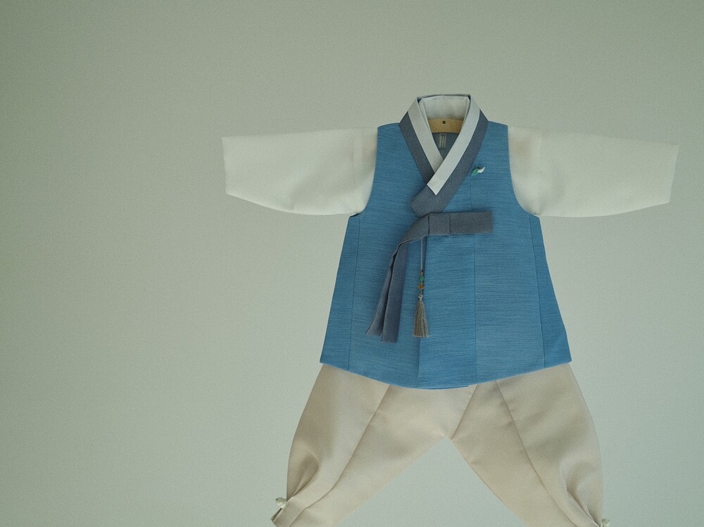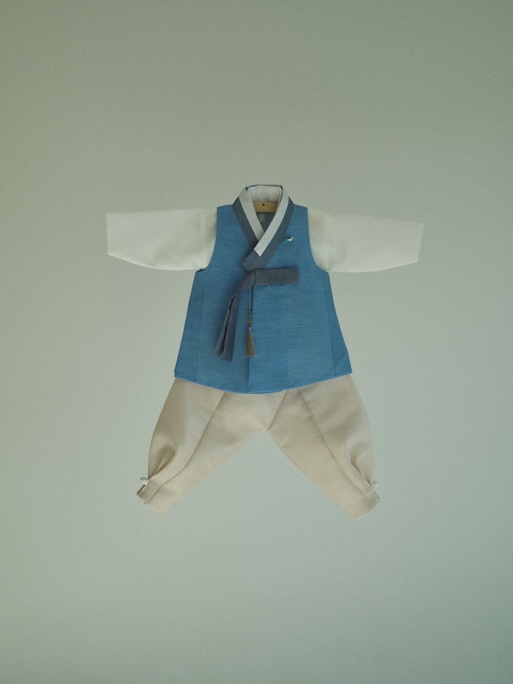 하늘색과 같은 톤으로 잘 어울러지는 남아한복이라