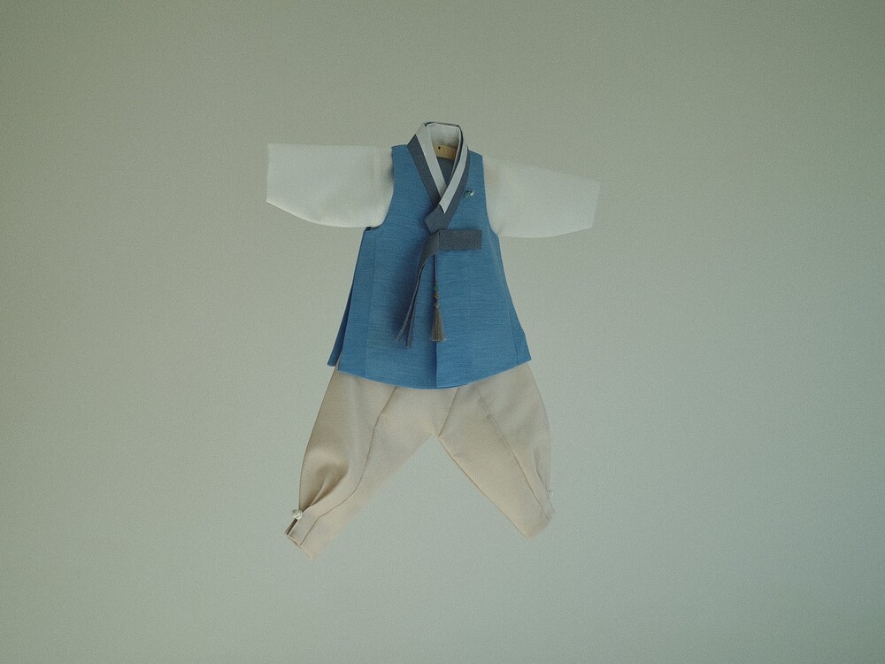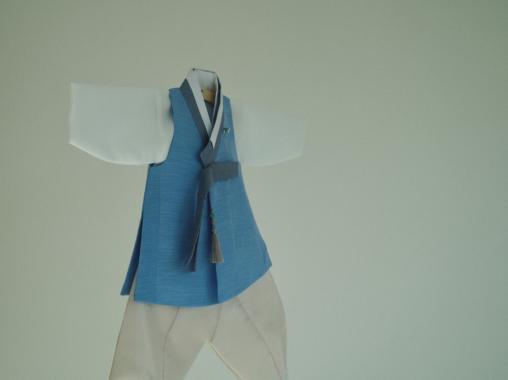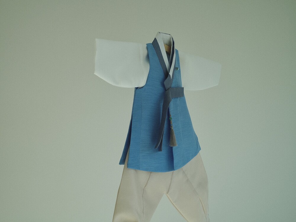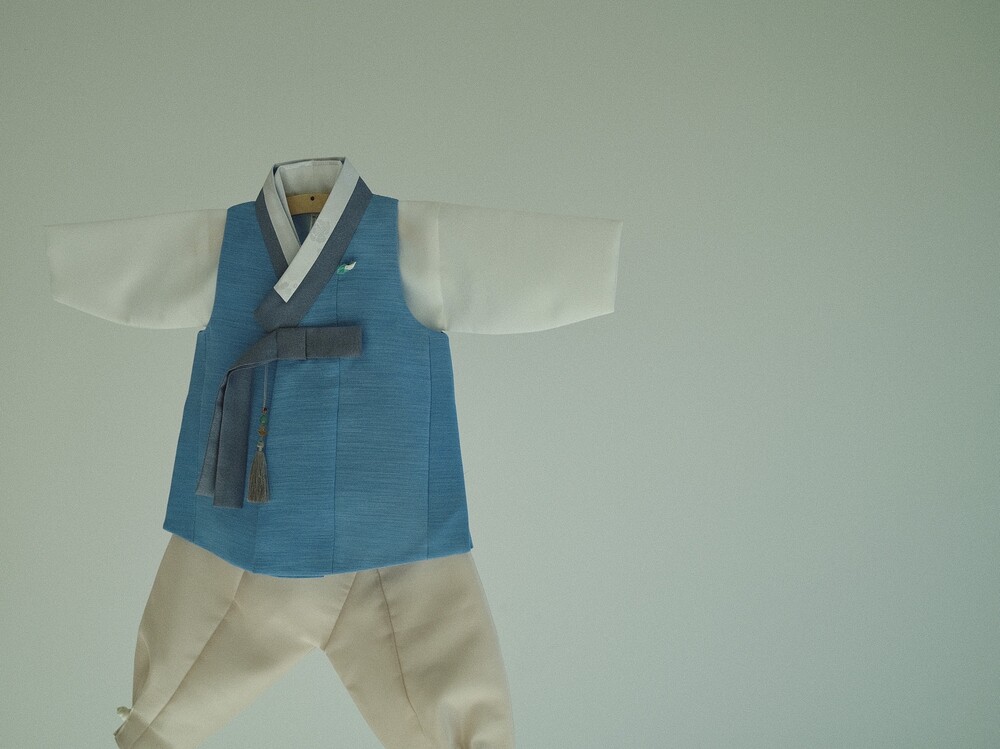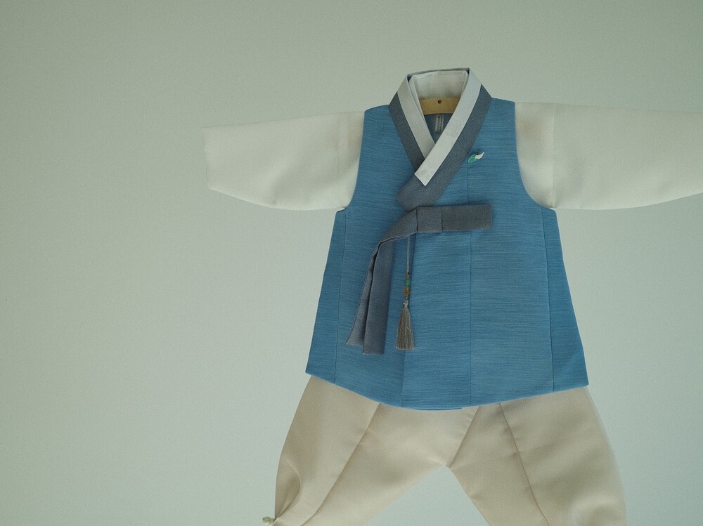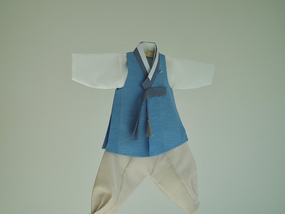 하늘색과 같은 톤으로 잘 어울러지는 남아한복이라