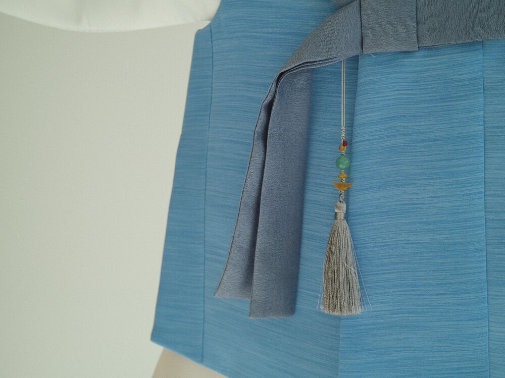 발랄하고 선명한 톤의 하늘색 쾌자입니다.