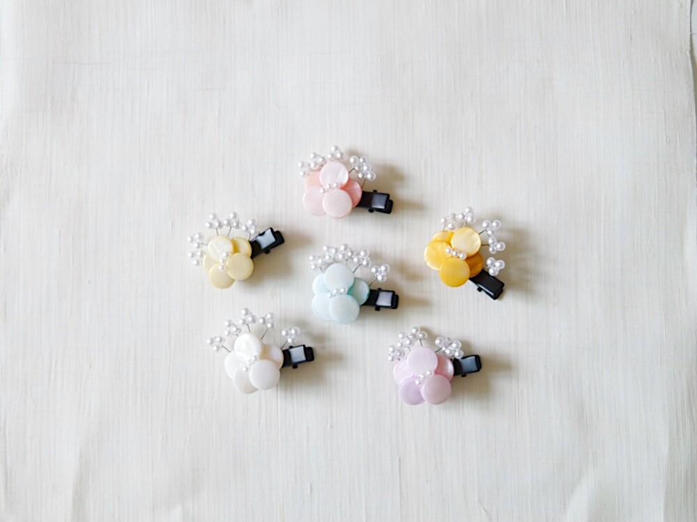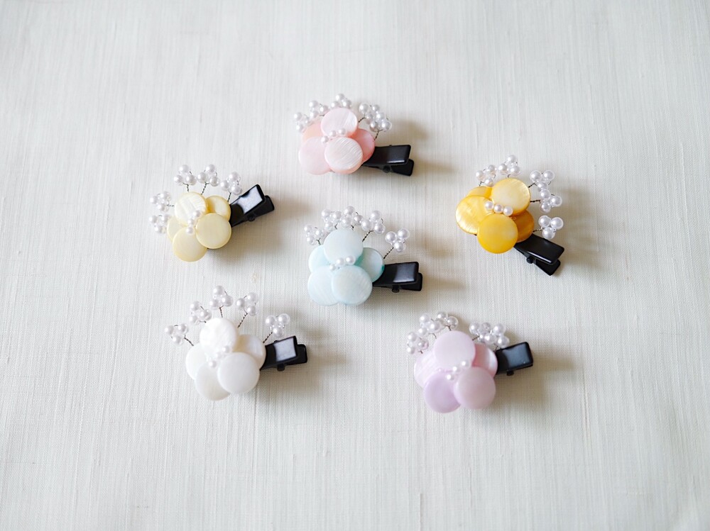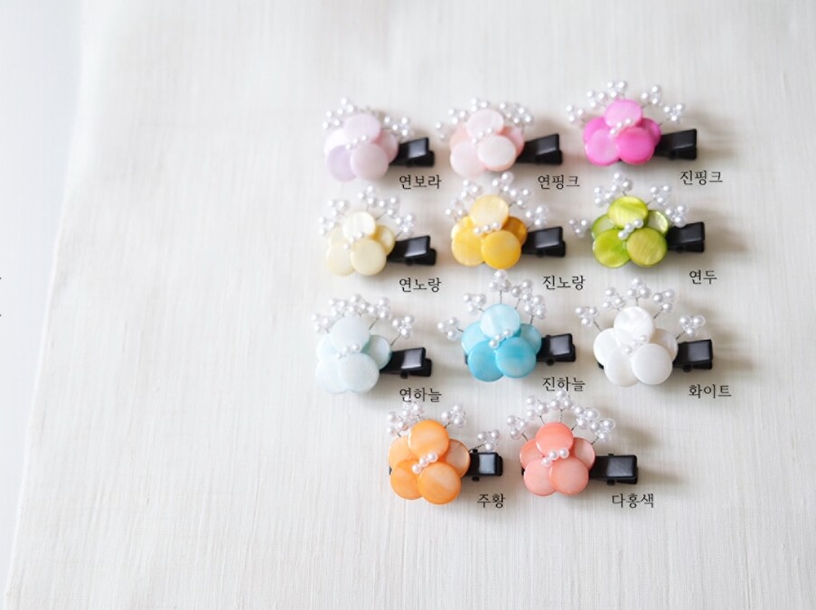 꽃잎모두 자개로 만들어진 미니헤어핀입니다.