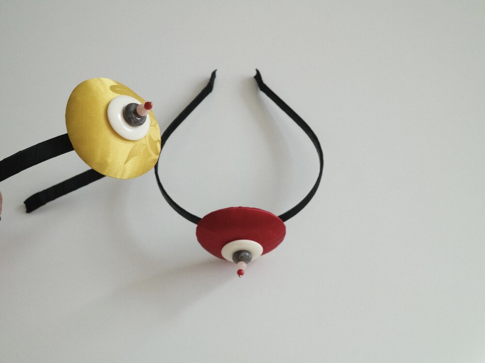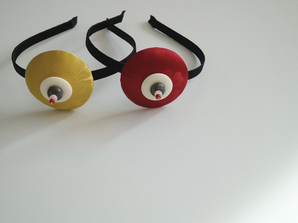 선명한 색상의 실크 원단과 원석들로 고급스럽게 제작된 실크 머리띠입니다.