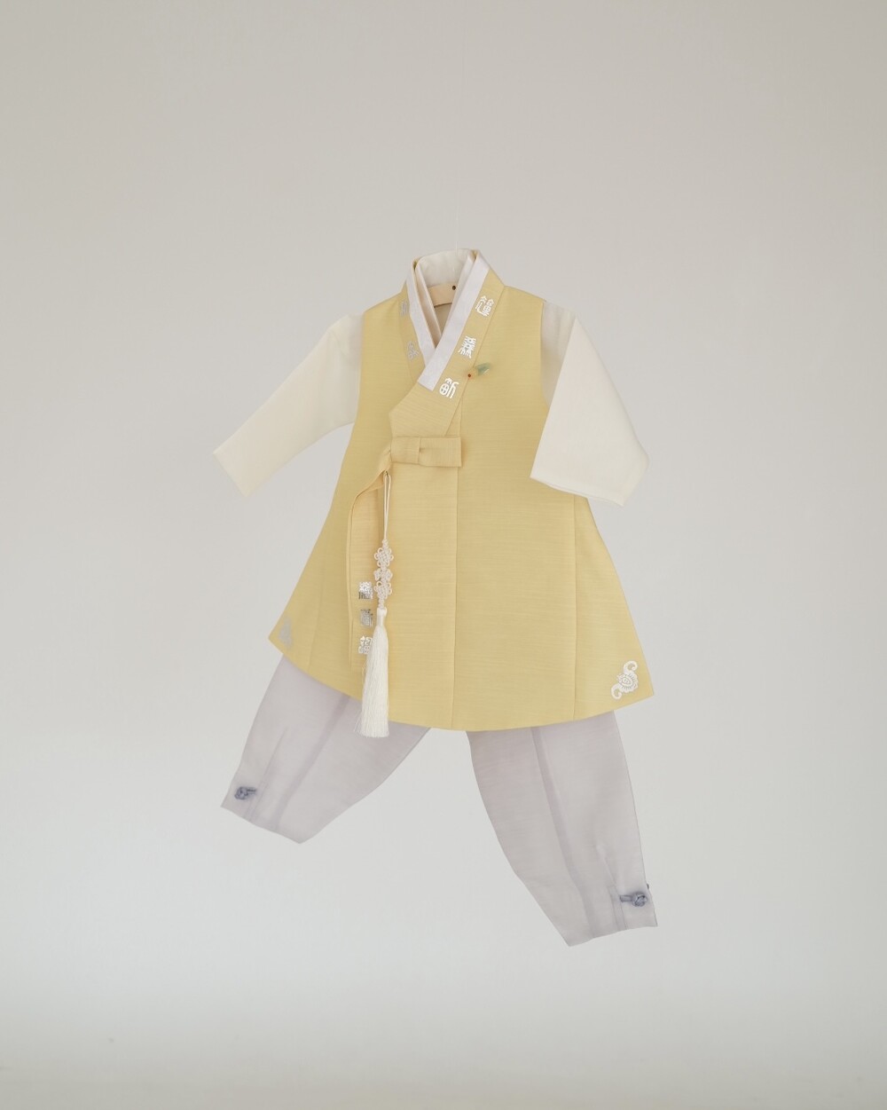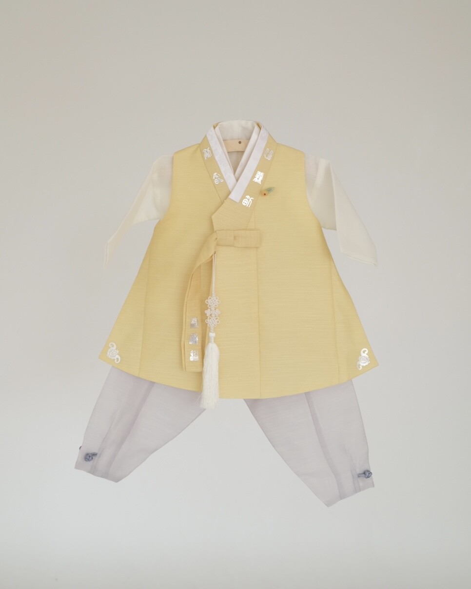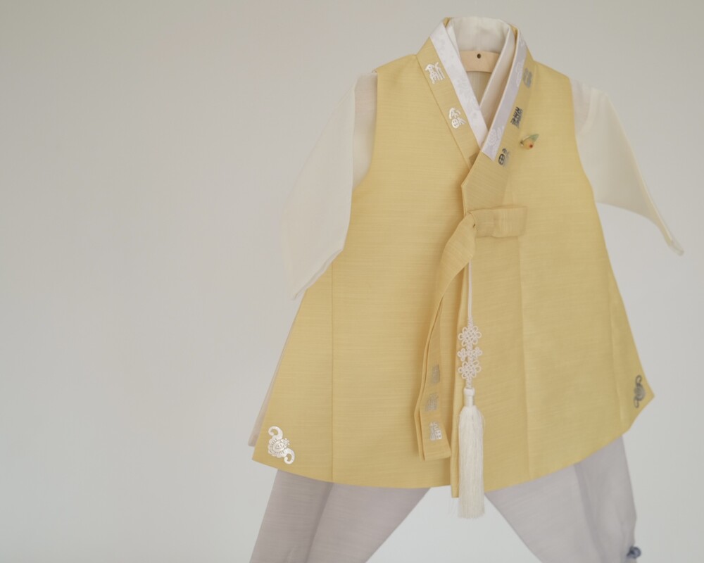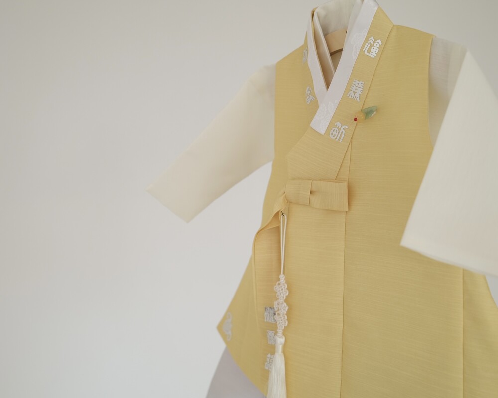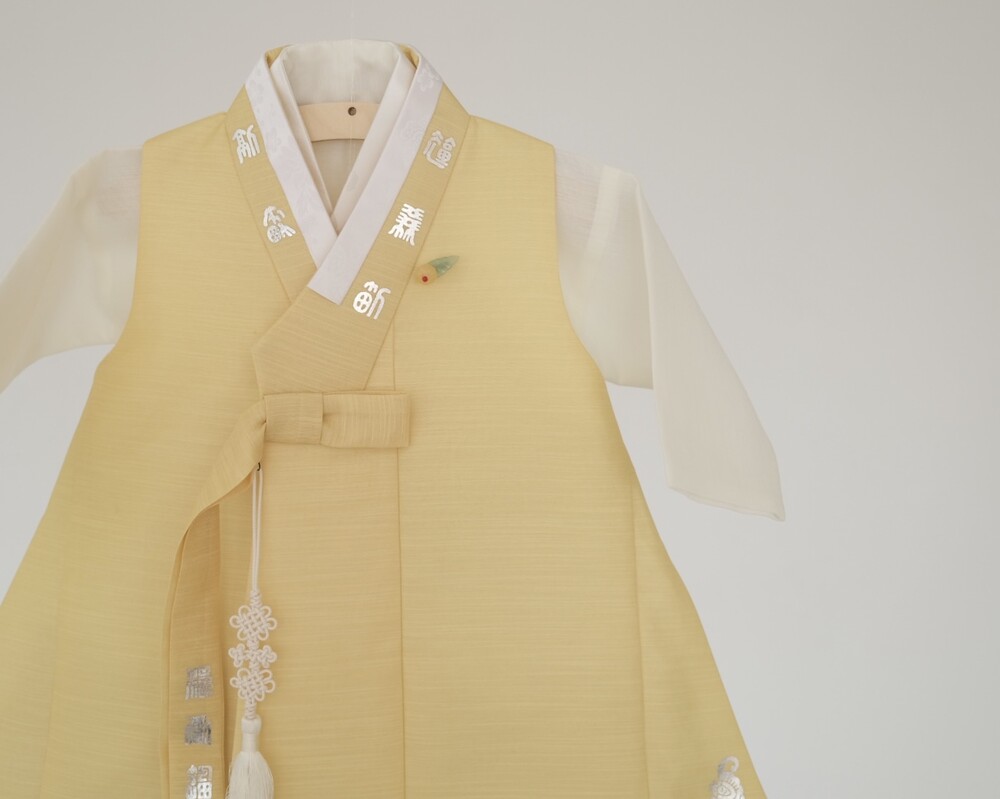 밝고 귀여운 느낌의 노랑빛 쾌자랍니다.