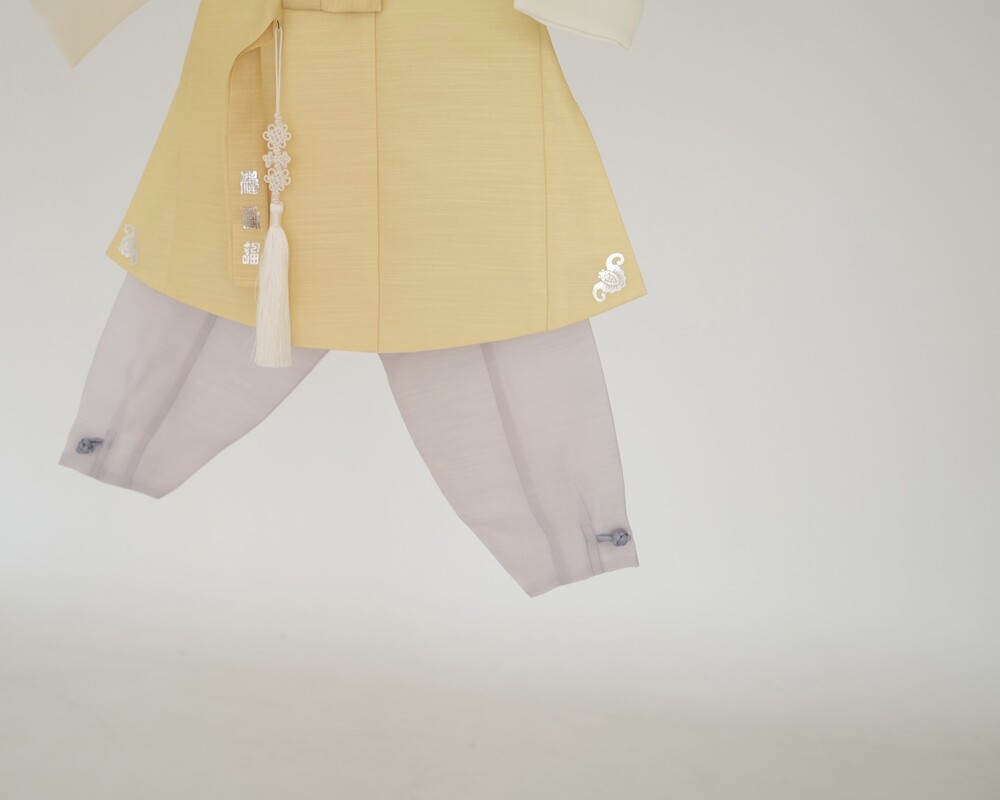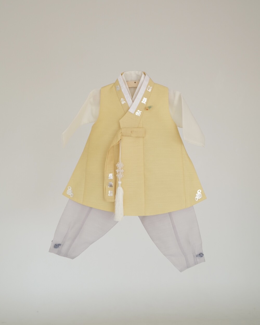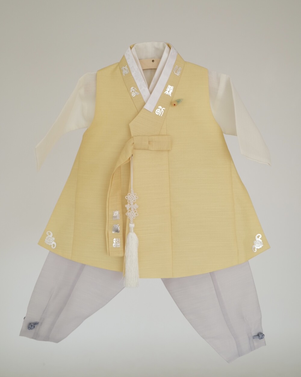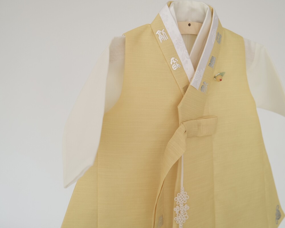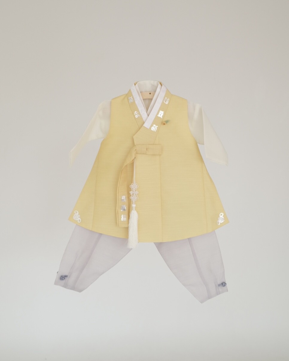 밝고 귀여운 느낌의 노랑빛 쾌자랍니다.