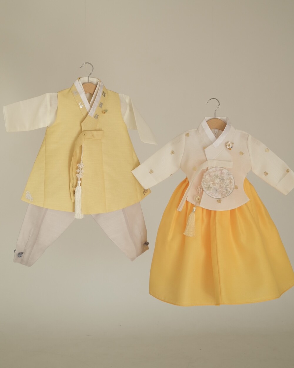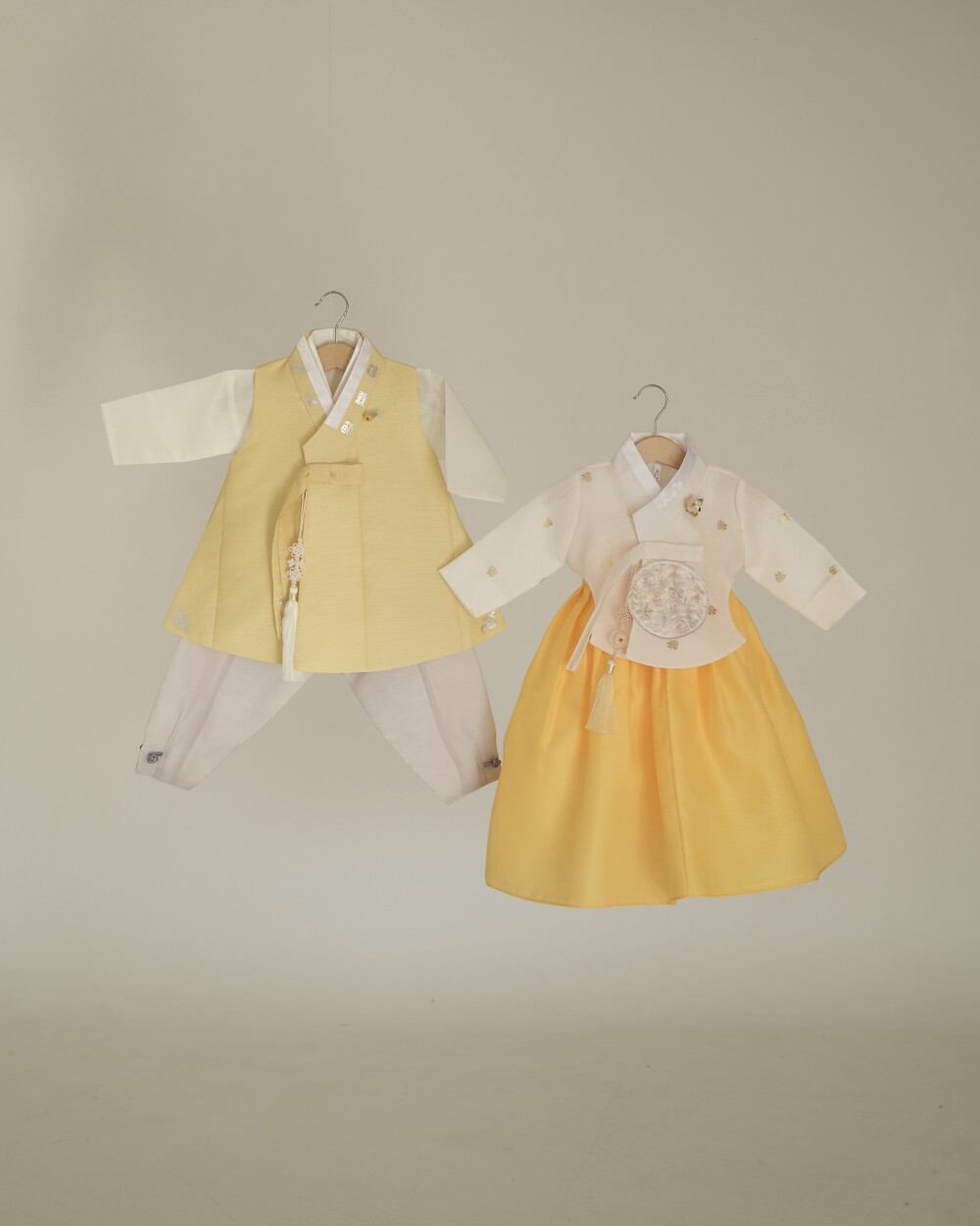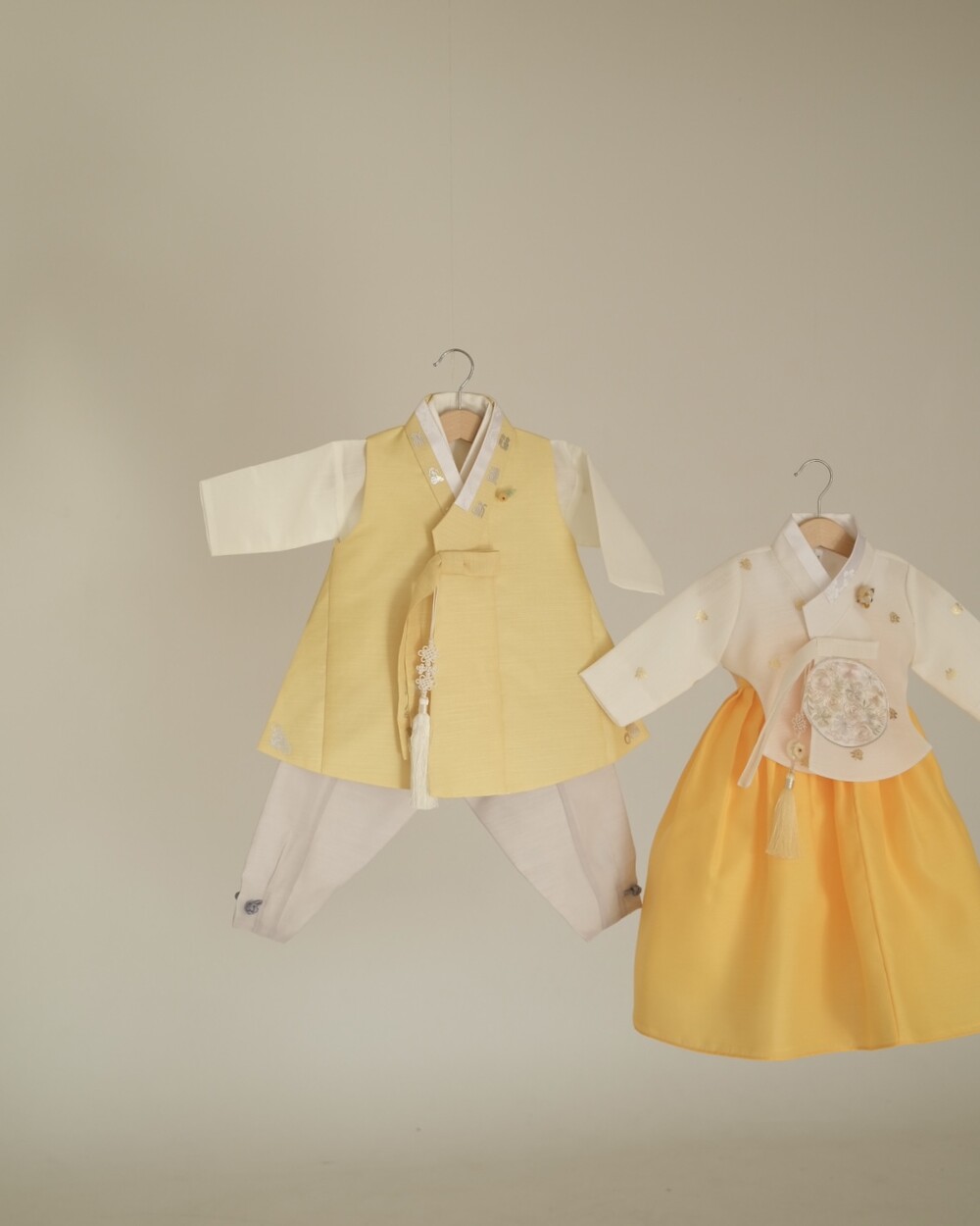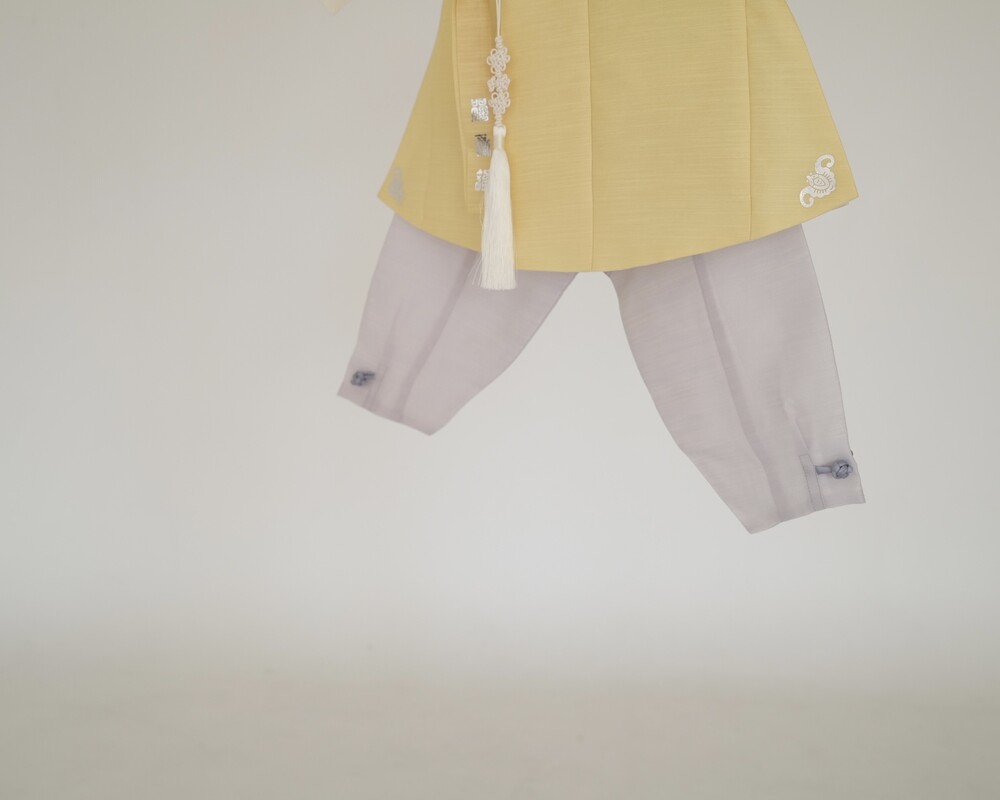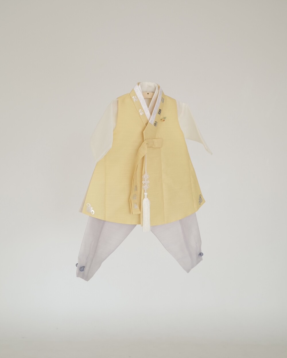 밝고 귀여운 느낌의 노랑빛 쾌자랍니다.