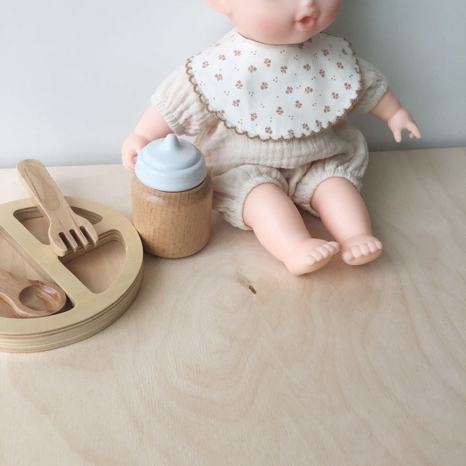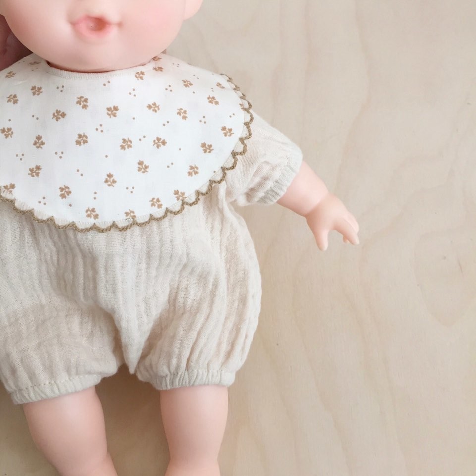 턱받이는 잔잔한 패턴의 원단과 레이스로