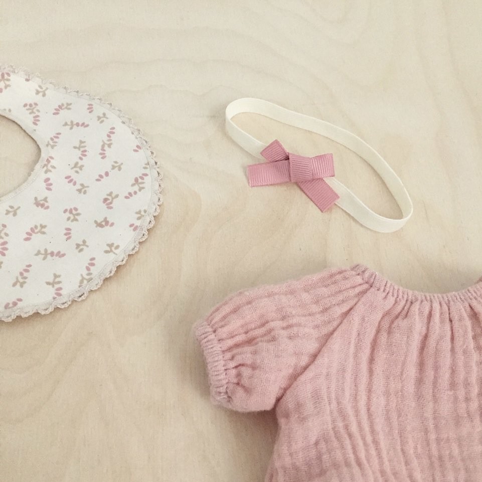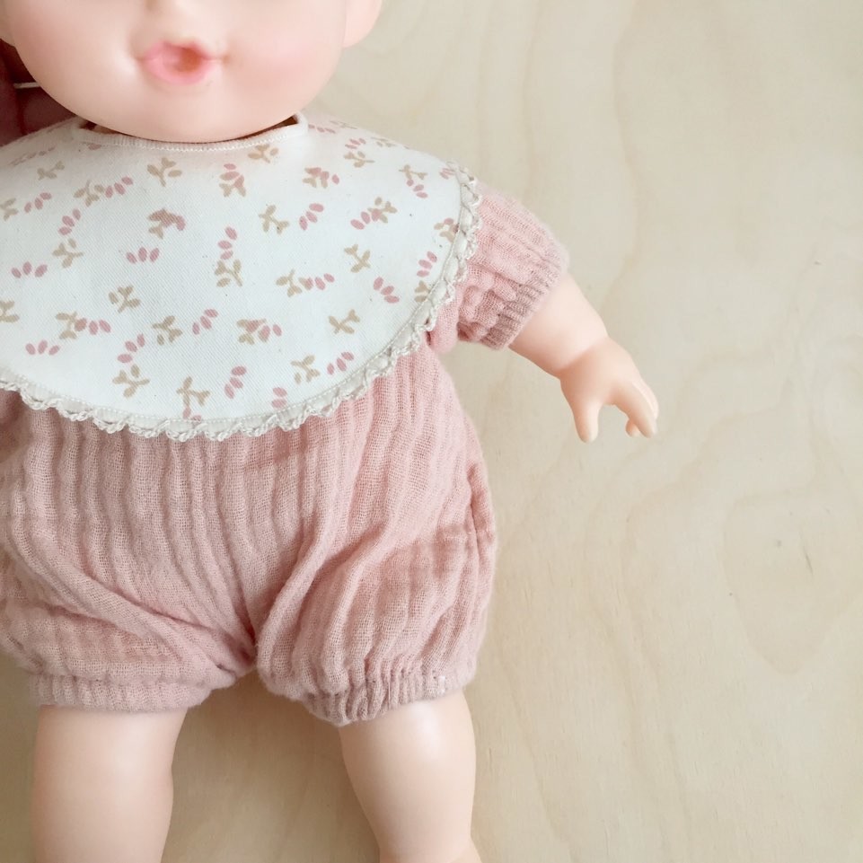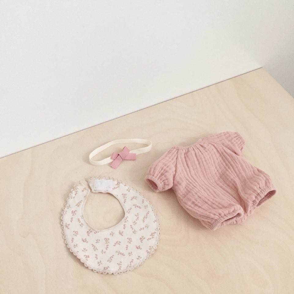 (핑크색 턱받이 원단에 잡사가 끼여 있을 수 있으며, 이는 불량이 아님을 참고해주세요.)