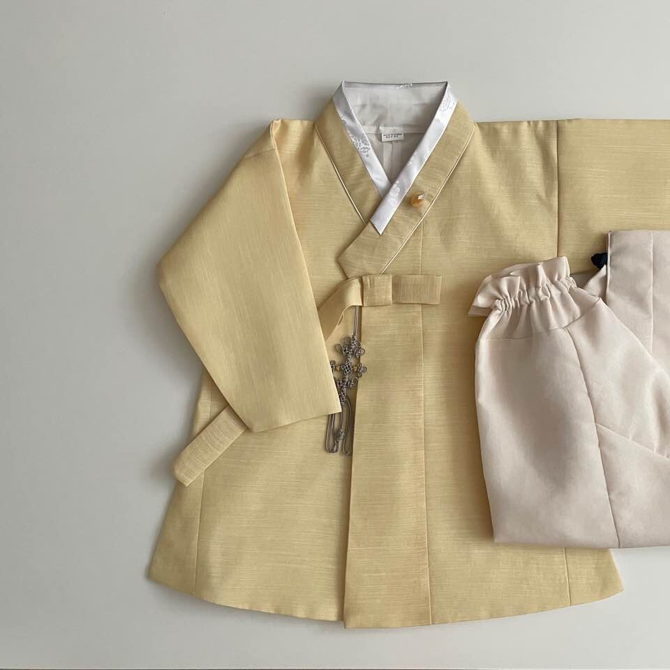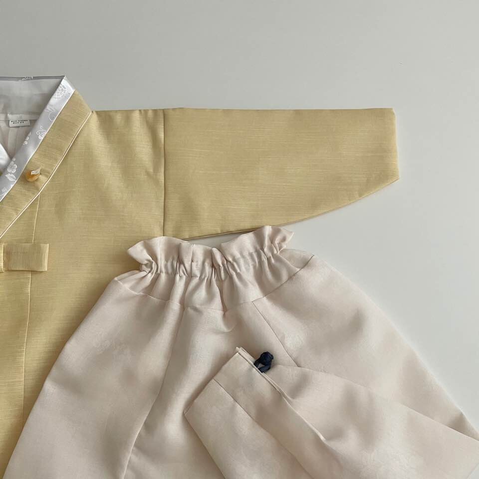 여아 한복 중 윤슬 당의의 노랑 치마 컬러와 같은 한복으로